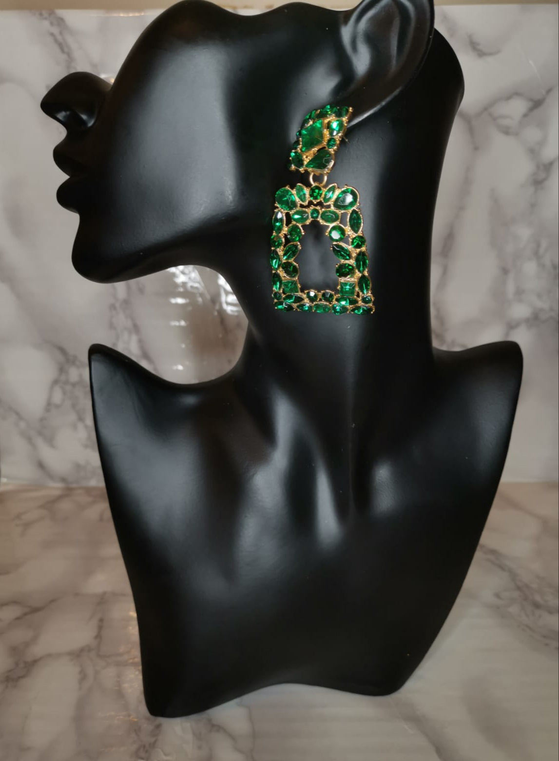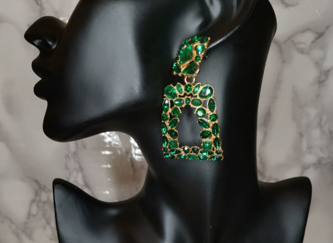Green Square Crystal drop earrings